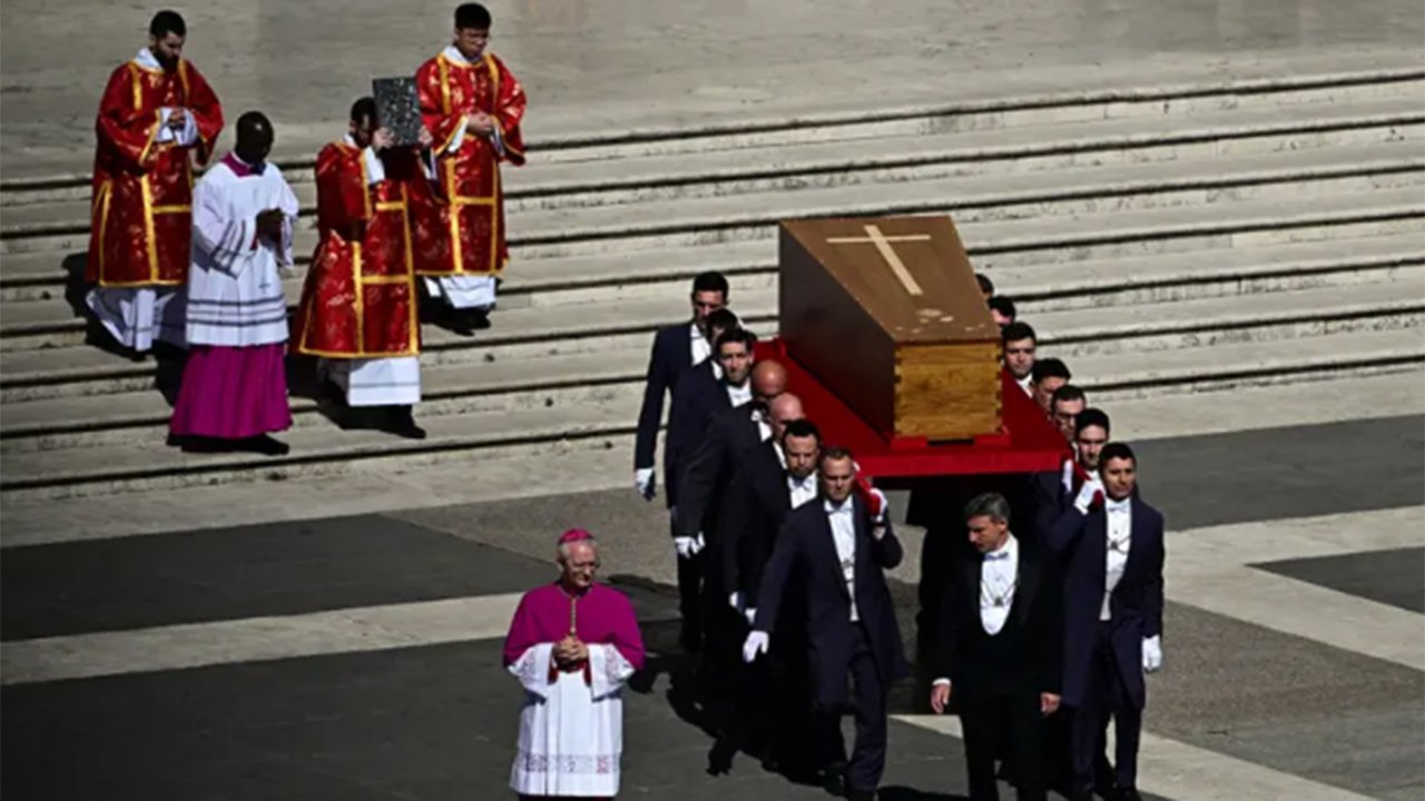 এর আগে, ভ্যাটিকানের সেইন্ট পিটার’স স্কয়ারে প্রায় দুই ঘণ্টাব্যাপী ধর্মীয় আচার-অনুষ্ঠানের মধ্য দিয়ে পোপের শেষকৃত্য অনুষ্ঠিত হয়। শেষে ফ্রান্সিসের কফিন বহন করে রোমের ব্যাসিলিকায় নিয়ে যাওয়া হয়।