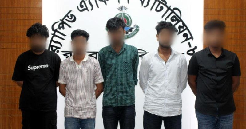 গ্রেপ্তারকৃতরা হলেন মেরাজুর রহমান আরমান (২১), বিল্লাল হোসেন ওরফে অন্তর (২১), রবি আলম মমিন (২১), আল আমিন ইসলাম ওরফে মাহি (১৯) এবং মো. হাসিব (২৩)। অভিযানের সময় তাদের কাছ থেকে অপরাধে ব্যবহৃত ১২টি মোবাইল ফোন জব্দ করা হয়েছে।