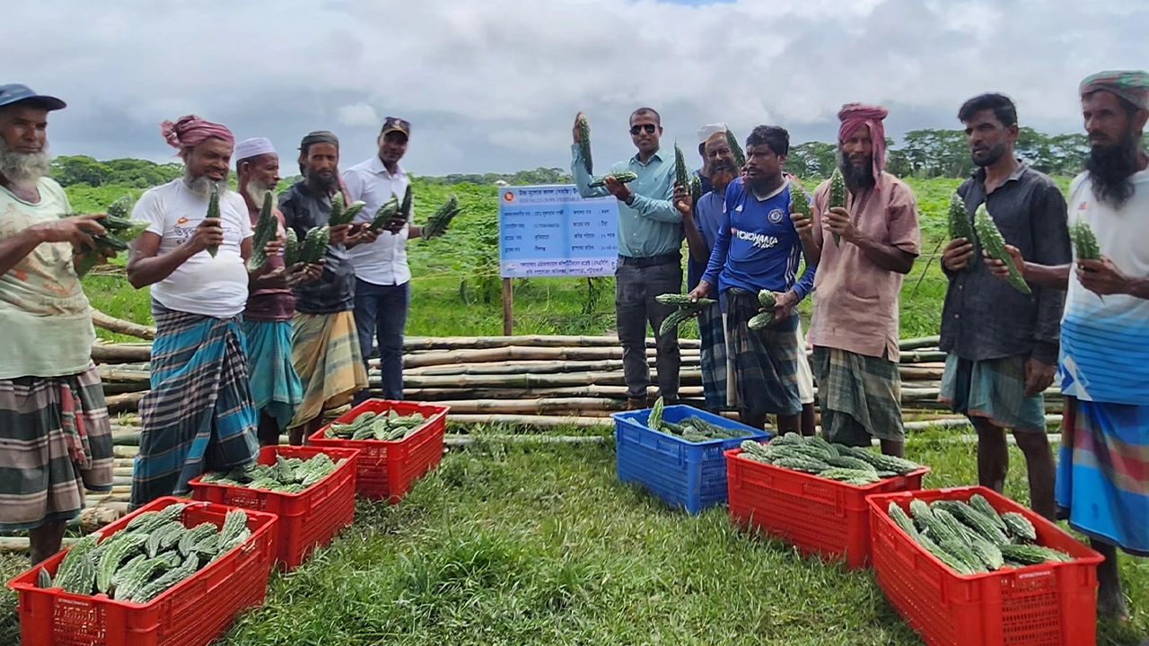 স্মলহোল্ডার এগ্রিকালচারাল কম্পিটিটিভনেস প্রজেক্ট (এসএসিপি) কৃষি সম্প্রসারণ অধিদপ্তর কলাপাড়ার আওতায় ২৫ কৃষক গ্রুপ করে পাঁচ একর জমিতে করলা চাষ করে এবার বাম্পার ফলন ফলিয়েছেন।