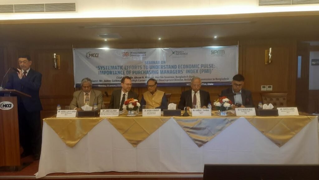 সোমবার (১৯ জানুয়ারি) রাজধানীর গুলশানের পুলিশ প্লাজায় মেট্রোপলিটন চেম্বার অব কমার্স অ্যান্ড ইন্ডাস্ট্রি (এমসিসিআই) আয়োজিত ‘সিস্টেমেটিক এফোর্টস টু আন্ডারস্ট্যান্ড ইকোনমিক পালস: ইমপোর্টেন্স অব পারচেজিং ম্যানেজার্স ইনডেক্স (পিএমআই)’ শীর্ষক সেমিনারে প্রধান অতিথির বক্তব্যে তিনি এসব কথা বলেন।
