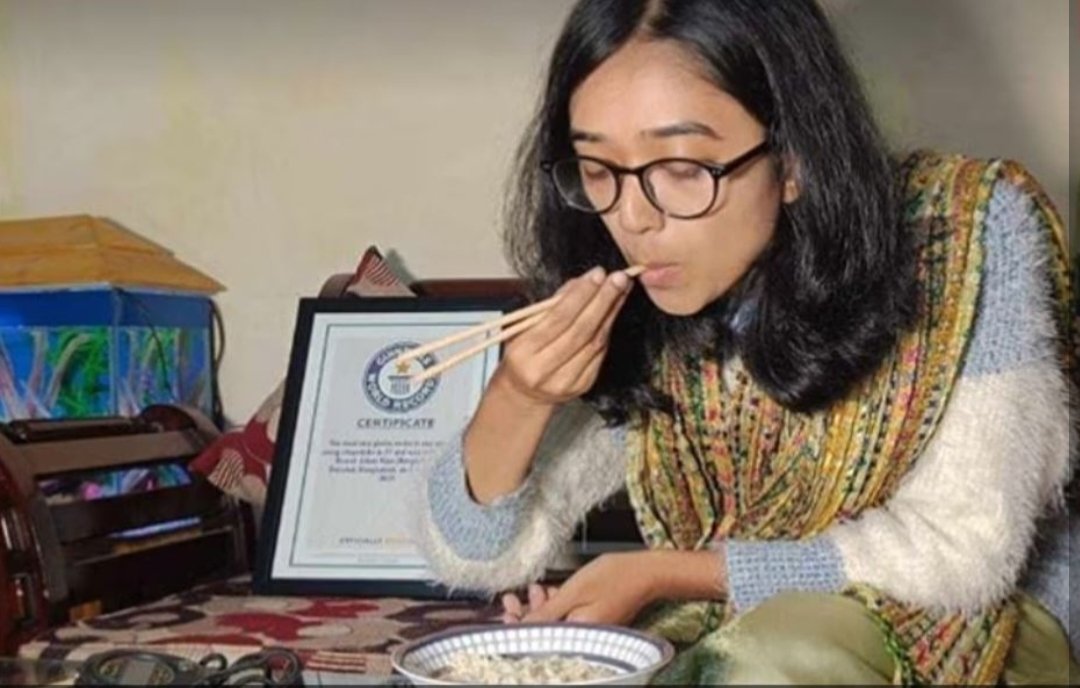 Guinness World Book: ভাত খেয়েই বিশ্বরেকর্ড নুসরতের | By Eating Rice With Chopsticks nusrat-jahan-nipa in Guinness World Book