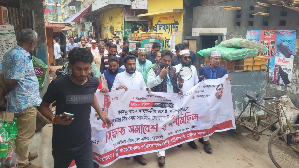 শুক্রবার বিকেলে নাজিরপুর সদর ইউনিয়নের কুমারখালী বাজার মাঠে ২ নং জামায়াতে ইসলামী শাখার আয়োজিত গণসমাবেশে প্রধান অতিথির বক্তব্যে তিনি বলেন, জামায়াতের বিরুদ্ধে অবিচারের চিত্র তুলে ধরে পাপিষ্ট দল আওয়ামী লীগের কঠোর সমালোচনা করেন। তিনি আরও বলেন, জামায়াতে ইসলামীর বিরুদ্ধে যে অত্যাচার করা হয়েছে তা বাংলাদেশের ইতিহাসে বিরল।