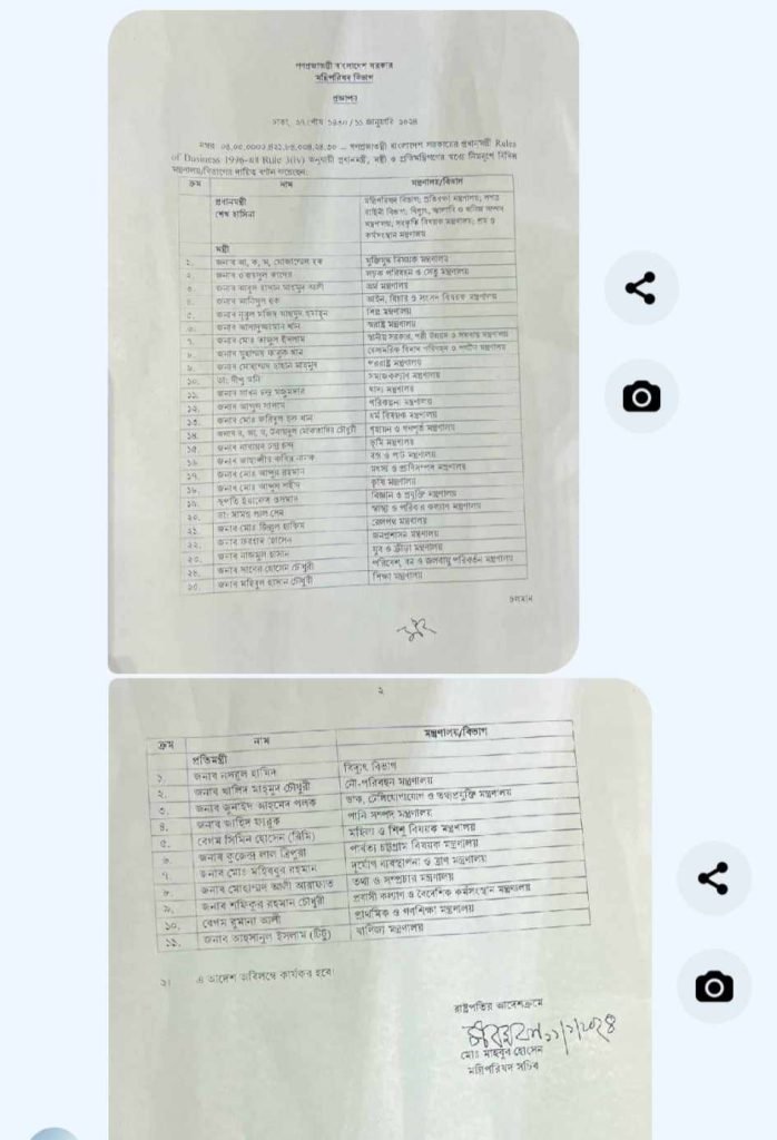 মন্ত্রীরা কে কোন মন্ত্রণালয়ের দায়িত্ব পেলেন