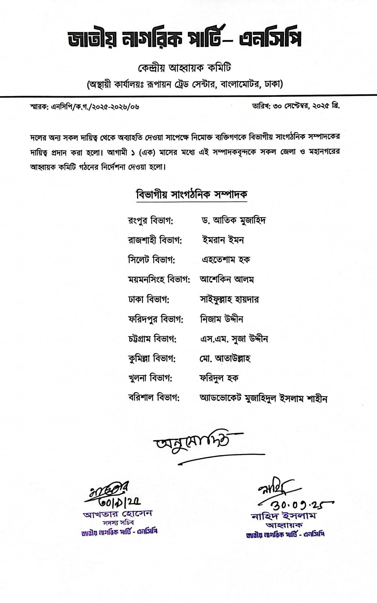 জাতীয় নাগরিক পার্টির (এনসিপি) আহ্বায়ক নাহিদ ইসলাম অভিযোগ করেছেন, সরকারের অনেক উপদেষ্টা নিজেদের স্বার্থসিদ্ধি করে এখন সেফ এক্সিটের পরিকল্পনা করছেন। তিনি বলেন, “উপদেষ্টা পরিষদের অনেককে বিশ্বাস করাটা ছিল বড় ভুল। তাদের প্রতি আস্থা রেখে আমরা প্রতারিত হয়েছি। অনেক উপদেষ্টা ইতিমধ্যে বিভিন্ন রাজনৈতিক দলের সঙ্গে গোপন সমঝোতায় গেছেন। কেউ কেউ নিজেদের আখের গুছিয়ে ফেলেছেন, আবার কেউ গণঅভ্যুত্থানের সঙ্গে বিশ্বাসঘাতকতা করেছেন। সময় এলে আমরা তাদের নাম প্রকাশ করব।”