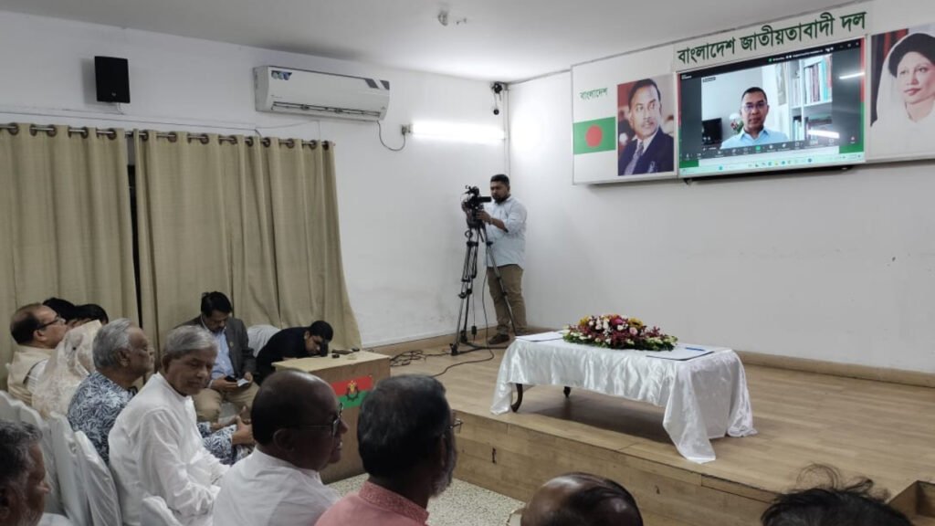 সভায় সভাপতিত্ব করেন বাংলাদেশ পূজা উদযাপন ফ্রন্টের সভাপতি অপর্ণা রায় দাস। বিশেষ অতিথি হিসেবে উপস্থিত ছিলেন বিএনপির ভারপ্রাপ্ত চেয়ারম্যানের উপদেষ্টা মাহাদী আমিন, জাতীয় নির্বাহী কমিটির সাংগঠনিক সম্পাদক শামা ওবায়েদ, যুগ্ম মহাসচিব মীর সরাফত আলী, ধর্ম বিষয়ক সম্পাদক রফিকুল ইসলাম, সম্মিলিত পেশাজীবী পরিষদের মহাসচিব কাদের গণি চৌধুরী এবং জাতীয় হিন্দু মহাজোটের মহাসচিব গোবিন্দ চন্দ্র প্রামানিক।